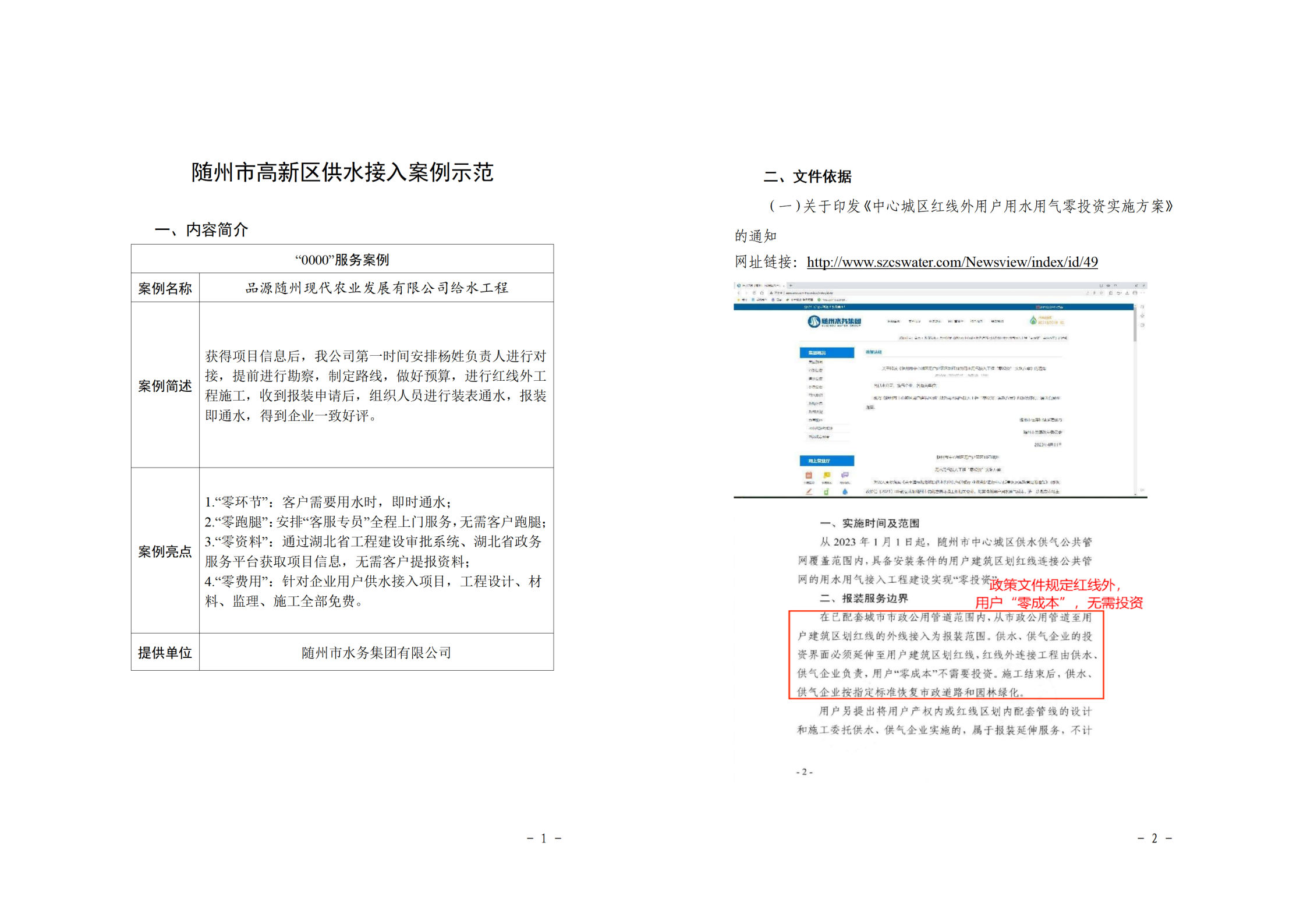 下面展示隨州市、曾都區(qū)、高新區(qū)、隨縣地區(qū)供水接入案例示范資料。