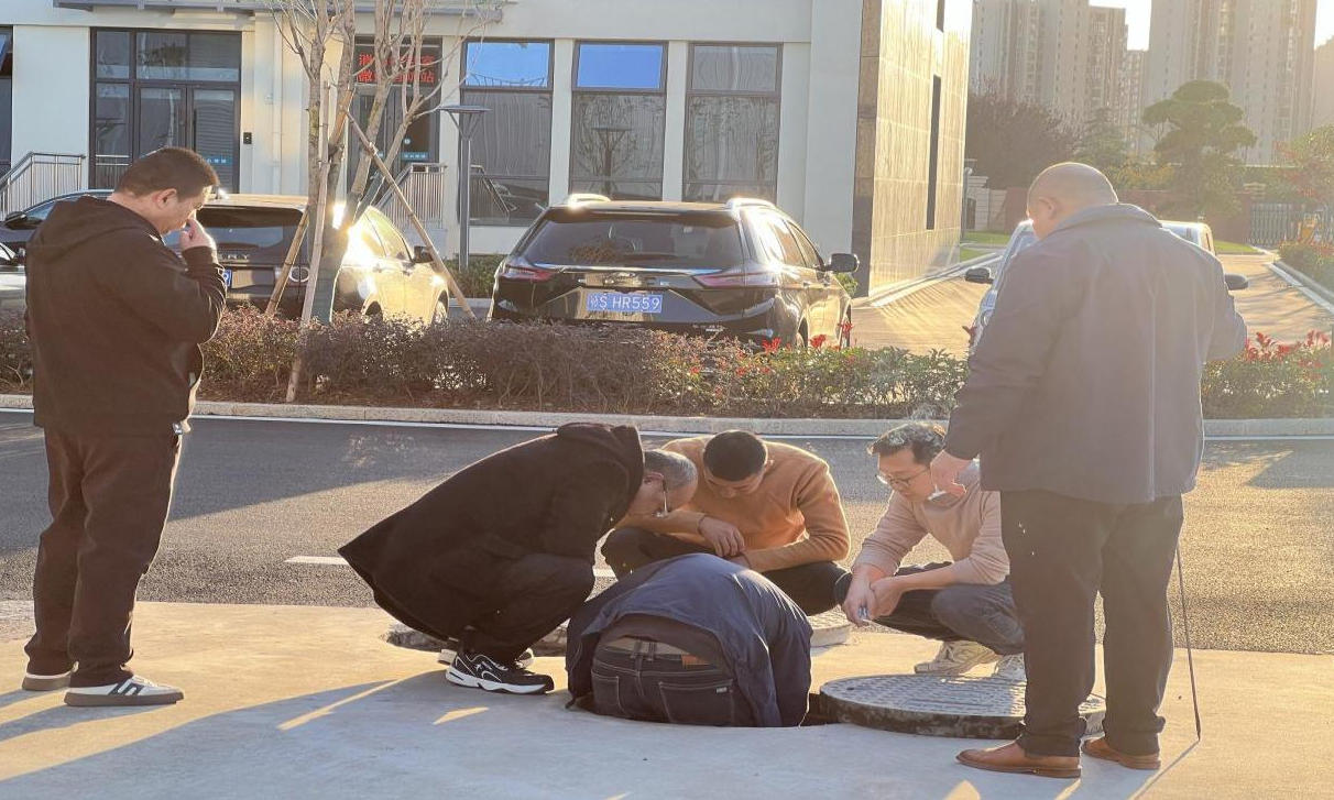 接到訴求后,城市供水公司客戶服務(wù)中心迅速響應(yīng),第一時間組建專項查漏小組,攜聽音桿、管網(wǎng)檢測儀等專業(yè)設(shè)備趕赴現(xiàn)場。面對廠區(qū)環(huán)網(wǎng)狀管網(wǎng)布局復(fù)雜、管線密集且部分埋深較深的排查難點,先對總閥門進行檢測,通過聽音桿捕捉到明顯跑水聲,隨后逐一排查下水井蓋,發(fā)現(xiàn)多處閥門被積水淹沒,部分井內(nèi)清晰探聽到漏水聲,查漏小組立即采用"閥門排除法",通過分段關(guān)閉閥門、監(jiān)測壓力變化,聽音辨位,逐步縮小排查范圍。經(jīng)過嚴(yán)謹檢測,最終確定兩處漏點位置。經(jīng)開挖驗證,兩處破損管道與判斷完全一致。